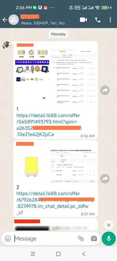 2. Siapkan link produk: beritahu kami pelayanan belanja direct atau transit, list link seller, quantity belanjaan dan varian produk yang diinginkan. Agar team admin mudah menginputnya dan melakukan proses pembelian produk.