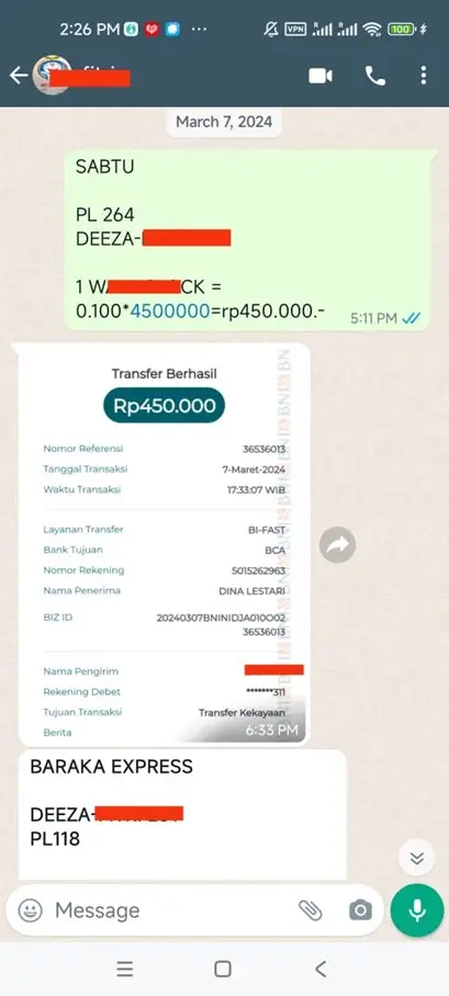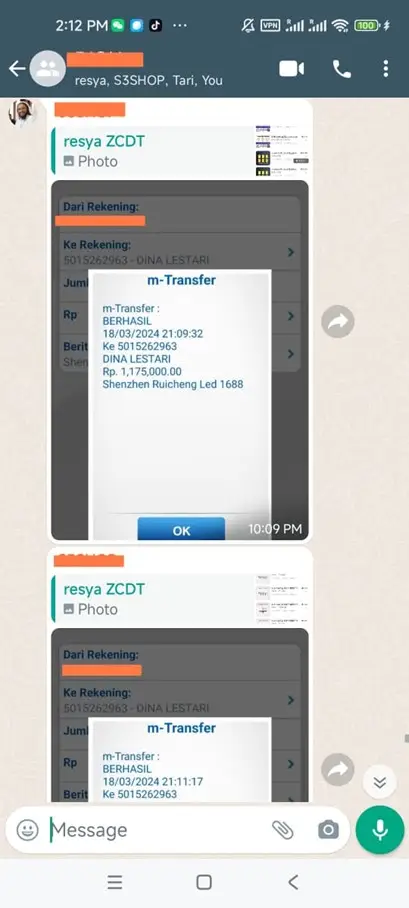 6. Kirim Bukti transfer ke dalam grup dan team akan memberikan informasi no nota masing-masing, agar mudah dalam mengecek keberadaan barang yang sudah dipesan.